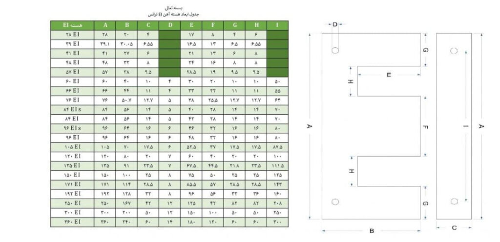 هسته ترانس EI نوعی هسته فلزی در ترانسفورماتورها ست که از ورقهای الکتریکی به شکل حروف E و I ساخته میشود. این طراحی باعث کاهش تلفات مغناطیسی و بهبود راندمان میگردد. هسته ترانس EI در ساخت انواع ترانس برق صنعتی، صوتی و الکترونیکی کاربرد گستردهای دارد.